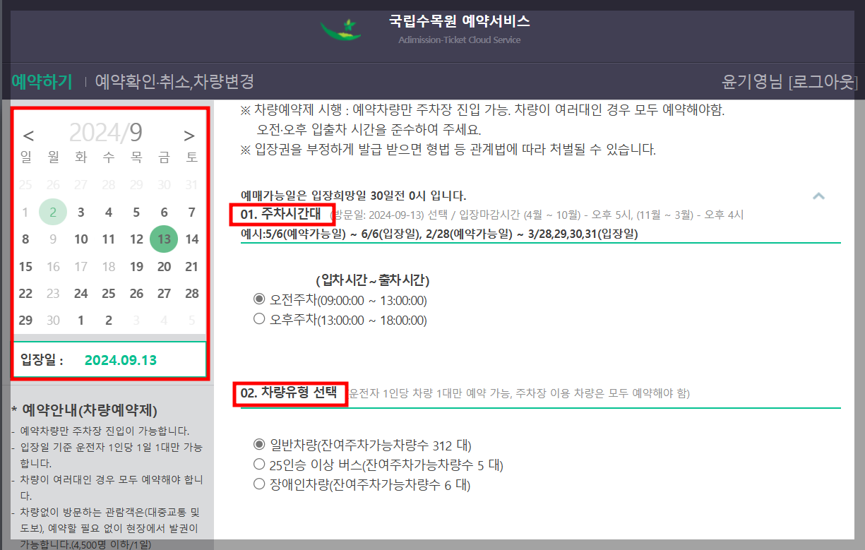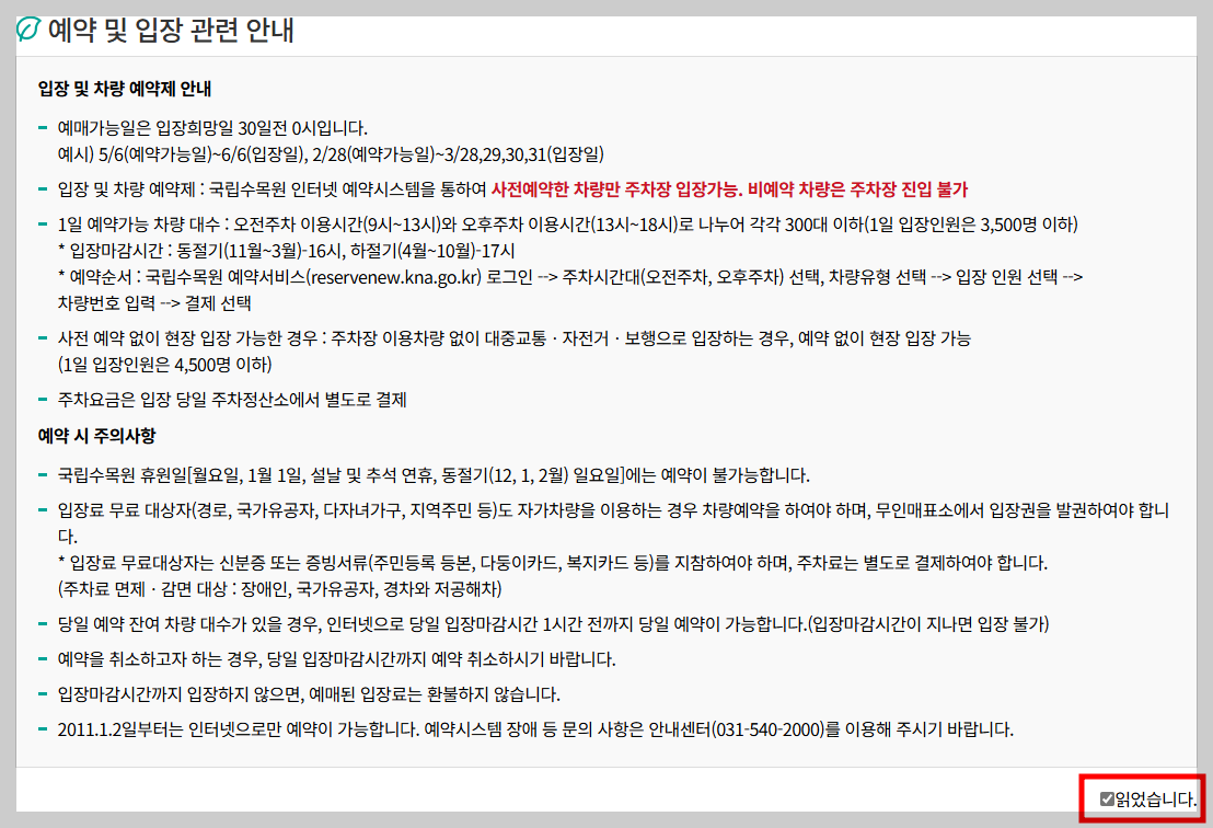 4. 국립수목원 차량 예약과 입장 방법