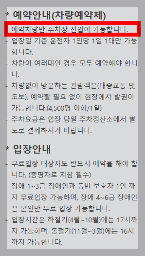 차량 예약부터 입장까지 하셔야 하니까 잊지마시고 차량도 꼭 예약해주셔야 합니다.