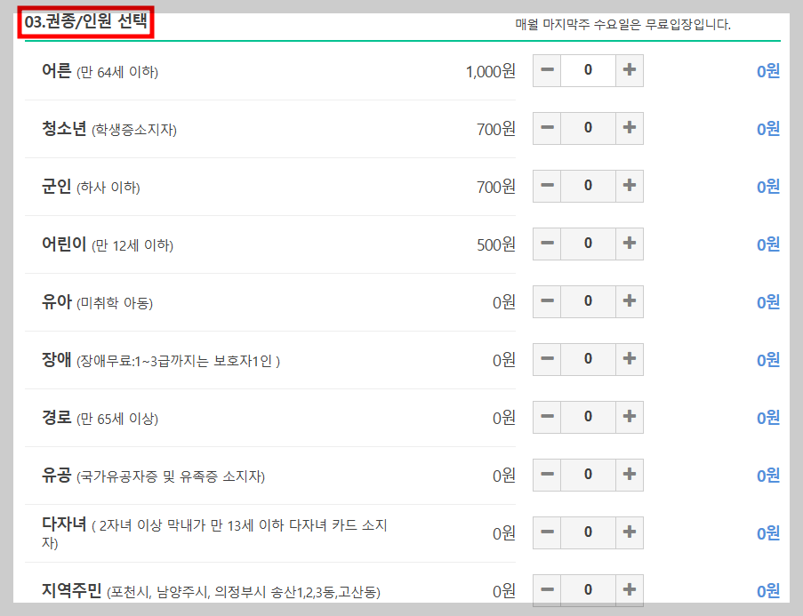 중요한 건, 예약 인원에 무료 입장 대상자도 포함된다는 점이에요.