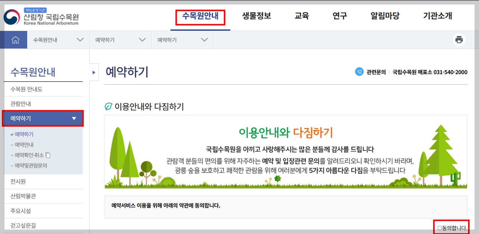 국립수목원 예약 방법 상세안내