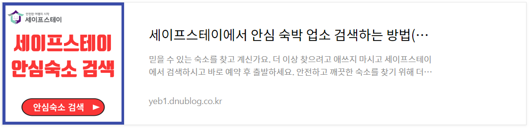 숙소를 찾으실때 어떤 숙소가 안전하고 깨끗한지 잘 모르시면 안심숙박업소 찾기를 이용해 보세요.