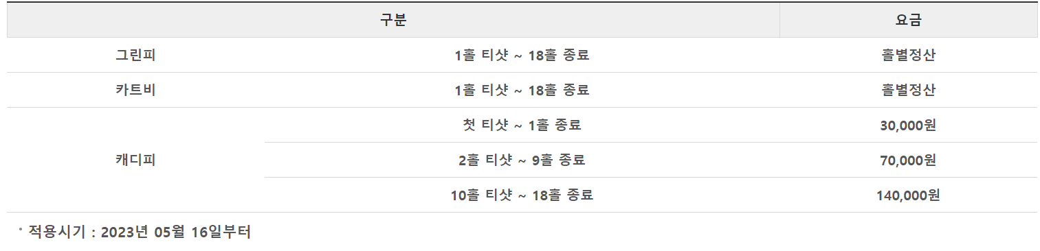 그린피는 요일과 시간에 따라 다릅니다.