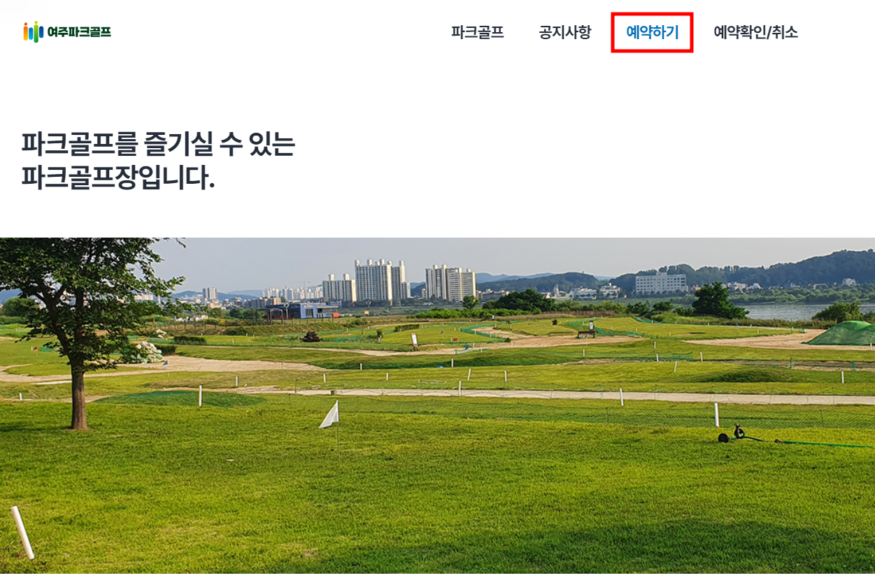 여주파크골프장 홈페이지에 접속하셔서 예약하기 버튼을 눌러주세요.