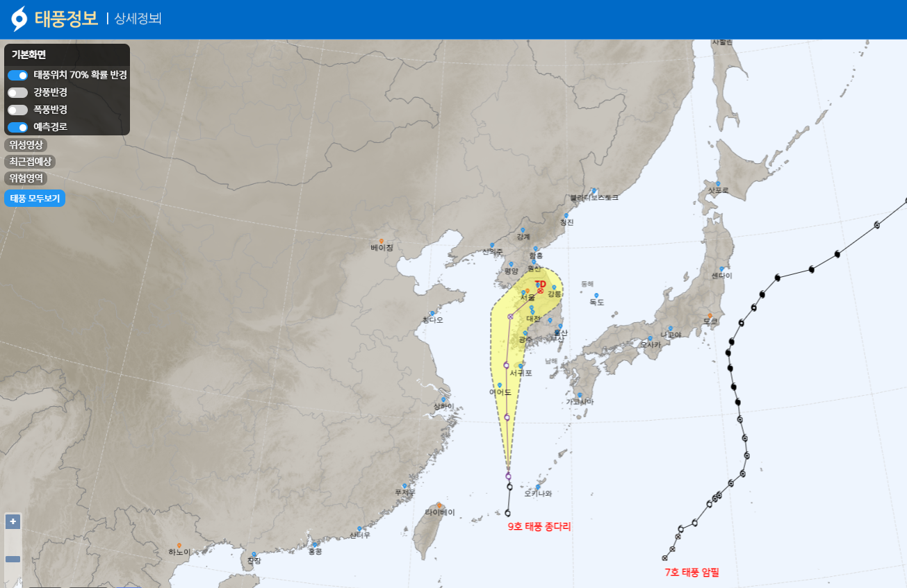 제9호 태풍 종다리의 위치와 예상진로에 대해서 실시간으로 알아보고 태풍 피해를 최소화하기 위한 대비 방법을 함께 알아보겠습니다.